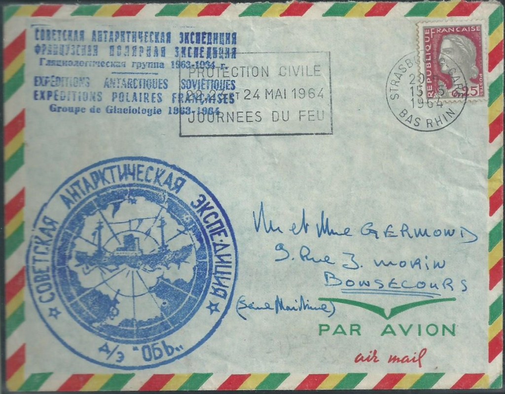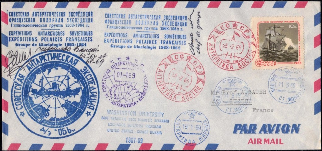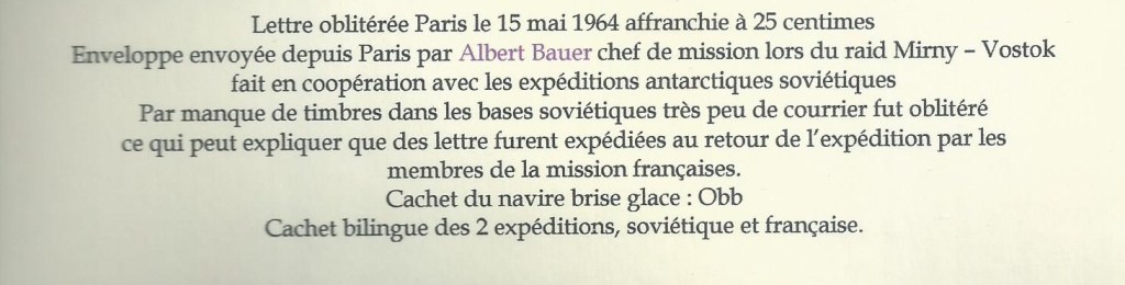 C’est au Groenland en 1959 que la France a mis au point la technique de mesure de la déformation des glaces. Cette avancée scientifique ainsi que les excellentes relations du professeur Bauer avec son homologue russe ont contribué à l’invitation par l’Académie des Sciences d’URSS pour participer aux travaux de glaciologie de la 9eme Expédition Antarctique soviétique pendant la campagne 1963-1964.