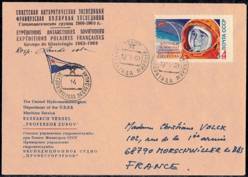 Ils embarquèrent au Havre le 19/11/1968 à bord du navire soviétique « Professor Zubov » avec 2 membres des expéditions soviétiques dont O Vinogradov, Chef de Raid et 5 tonnes de matériel.