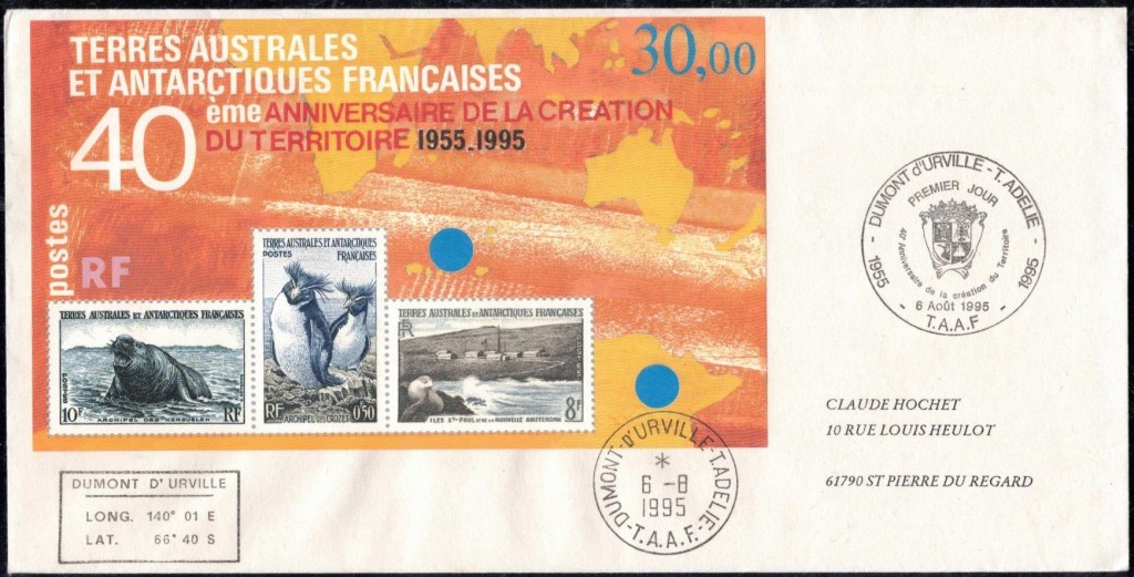 Le décret du 6 août 1955 crée le Territoire des Terres Australes et Antarctiques Françaises, englobant quatre districts (Crozet, Kerguelen, Saint-Paul et Amsterdam et la Terre Adélie). A sa tête est nommé un Administrateur Supérieur ayant rang de Préfet. Comme les T.A.A.F. deviennent un territoire d’outremer à part entière, ils ne dépendent plus de Madagascar, et ont à présent un budget et une gestion autonome.