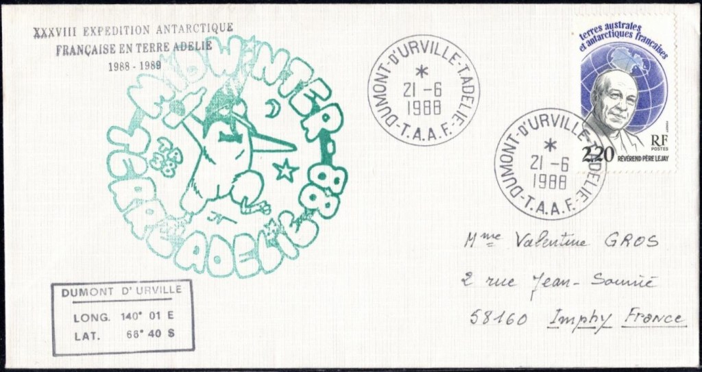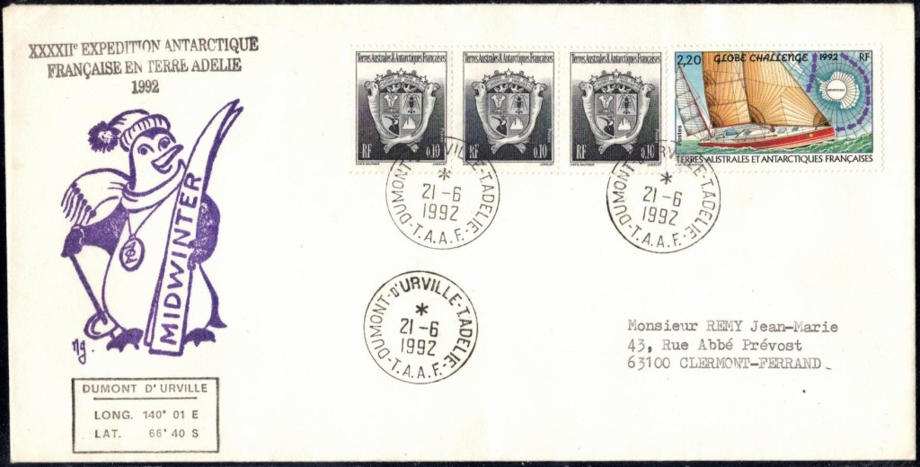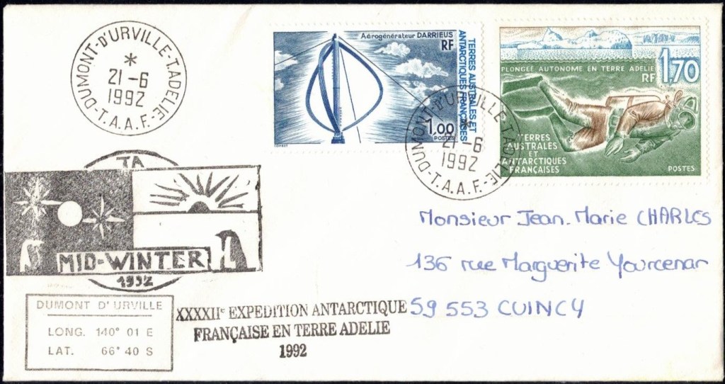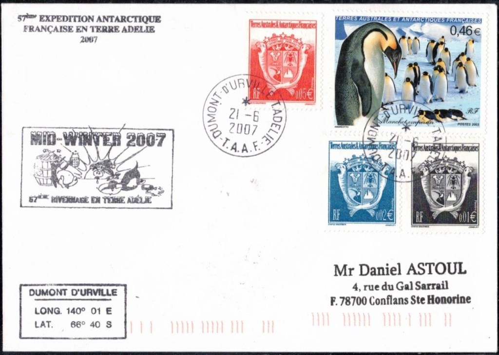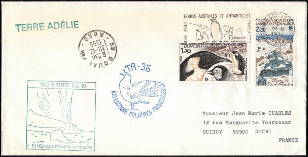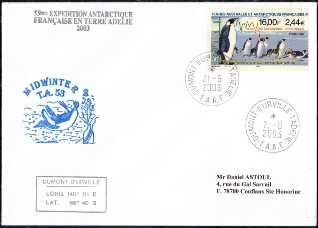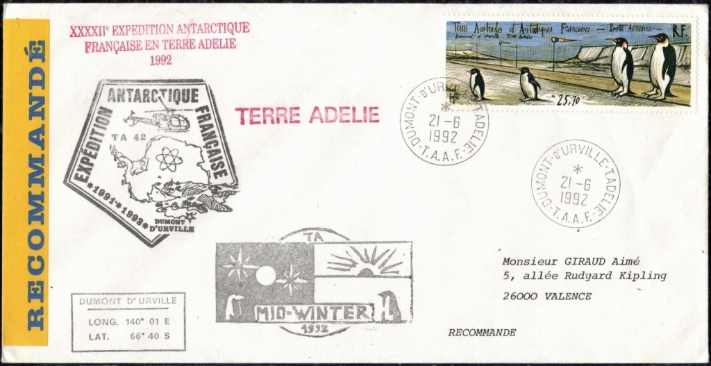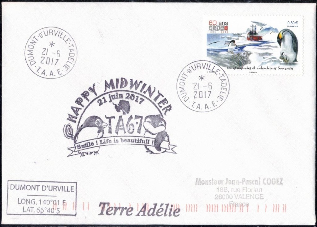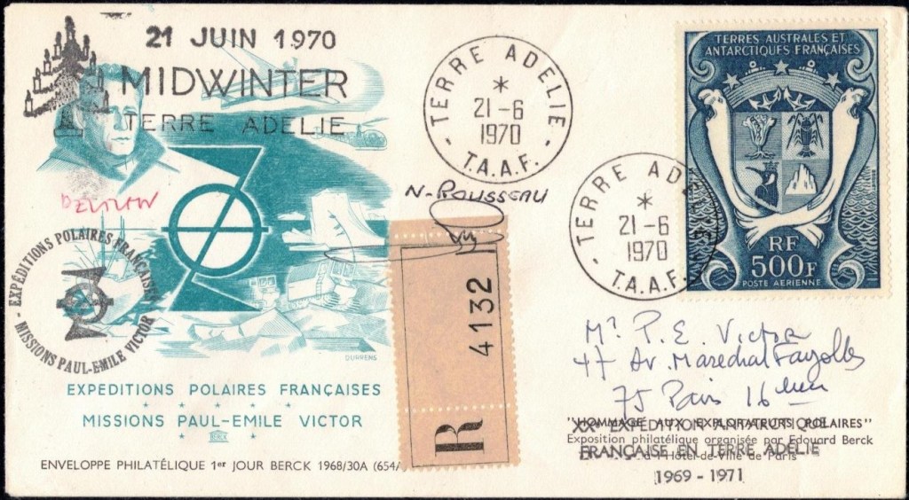 MIDWINTER Carte photographique des TAAF oblitérée du 21 juin 1969 Midwinter 1980 sur pli de service (non affranchi)
