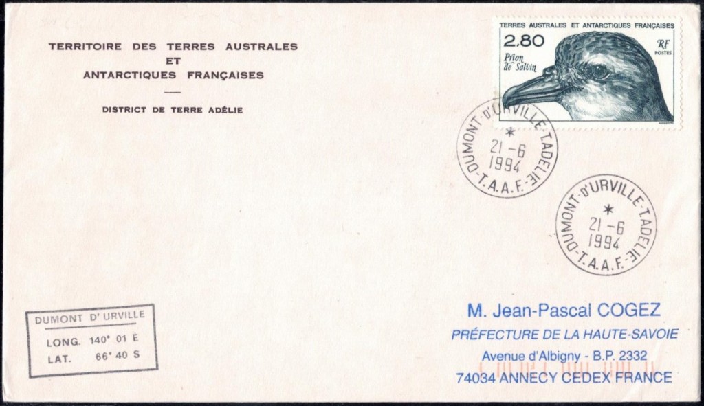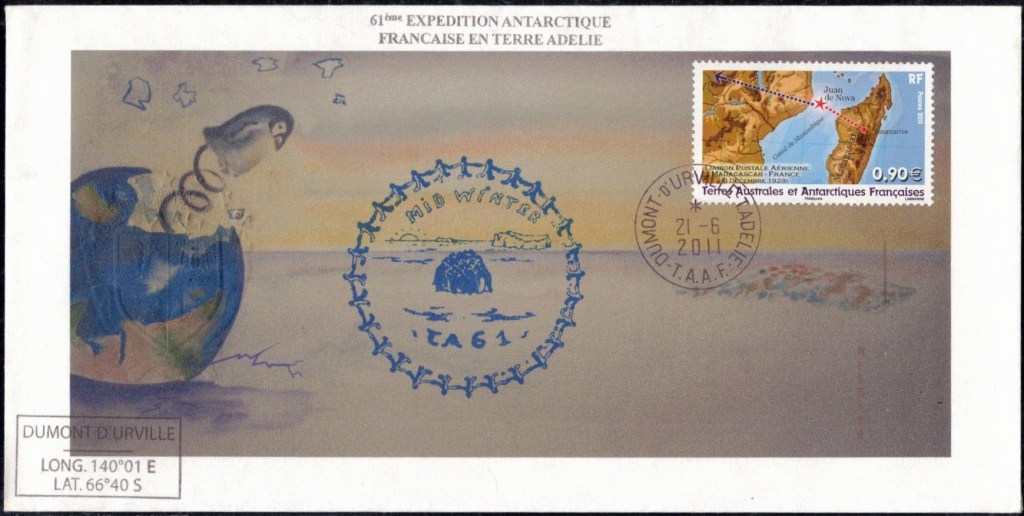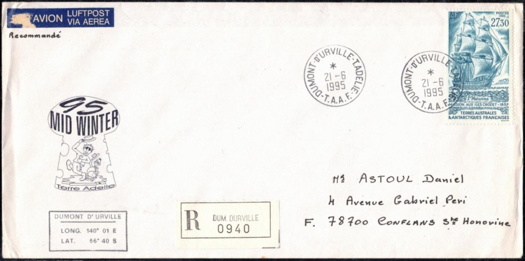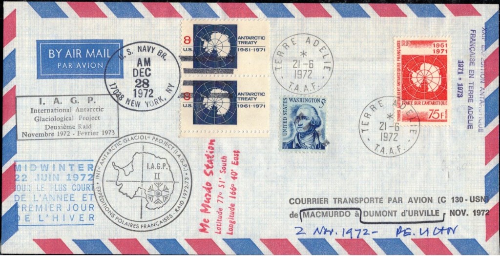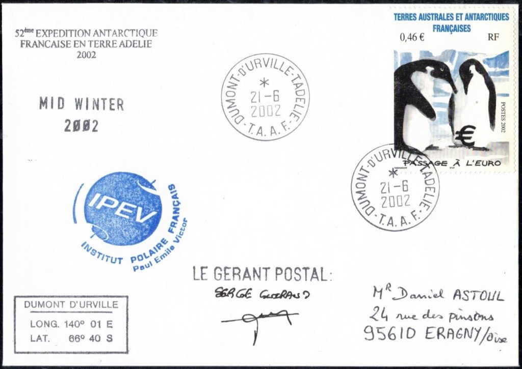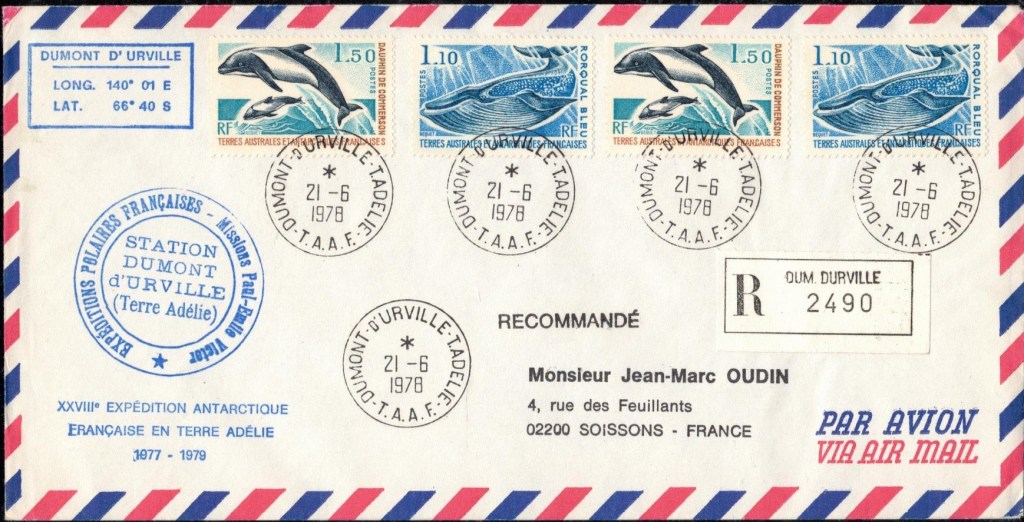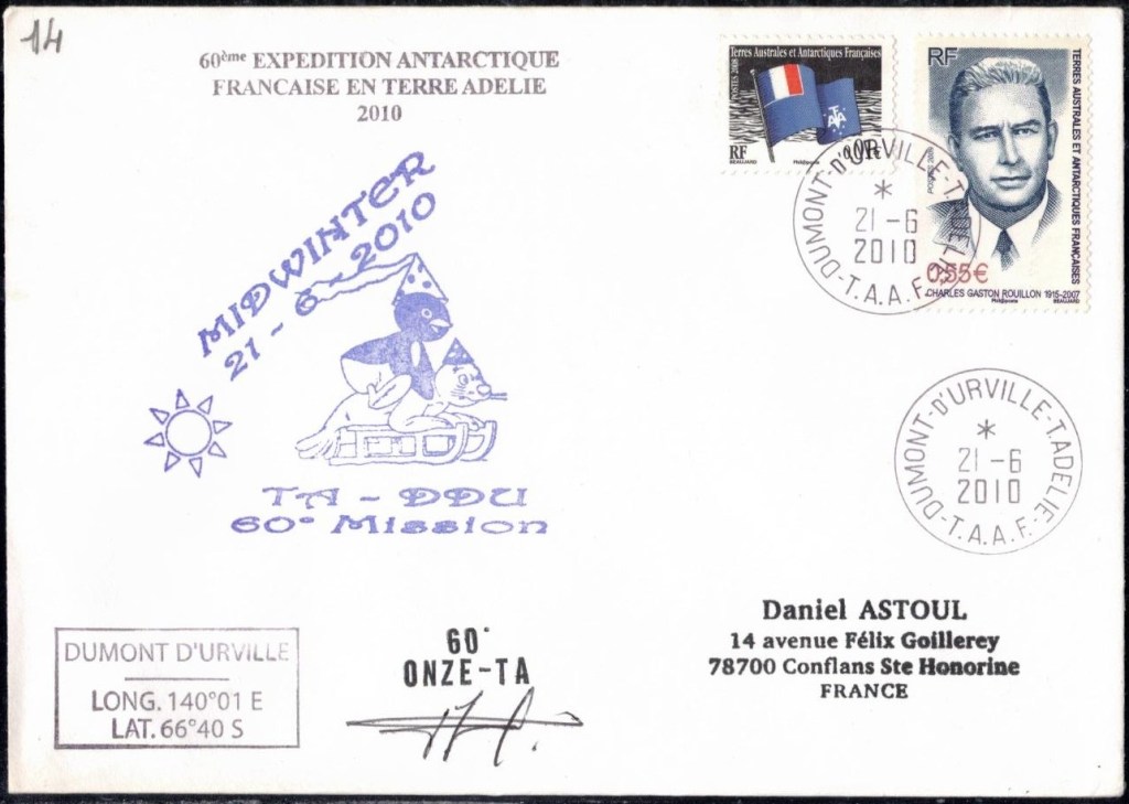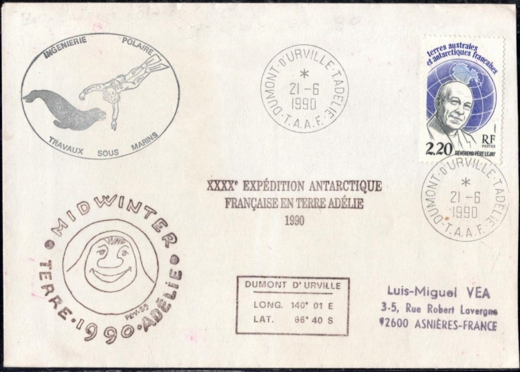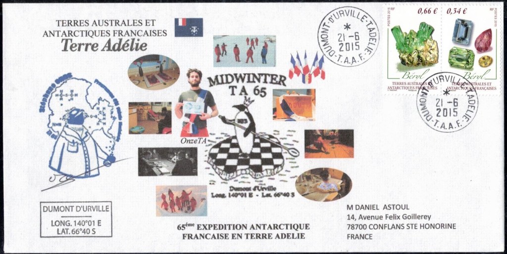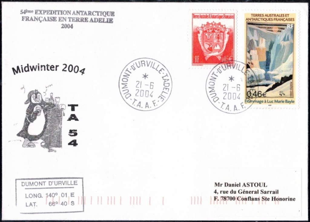 MIDWINTER Carte photographique des TAAF oblitérée du 21 juin 1969 Midwinter 1980 sur pli de service (non affranchi)