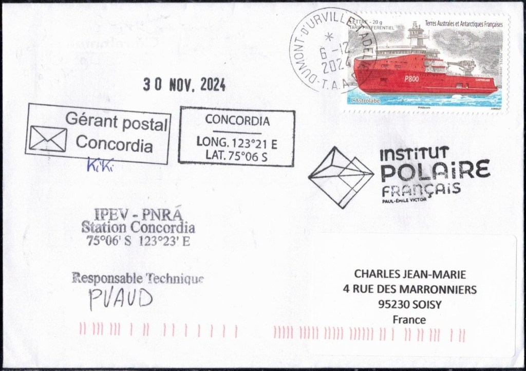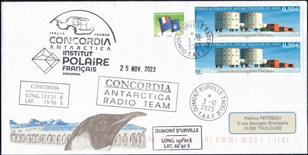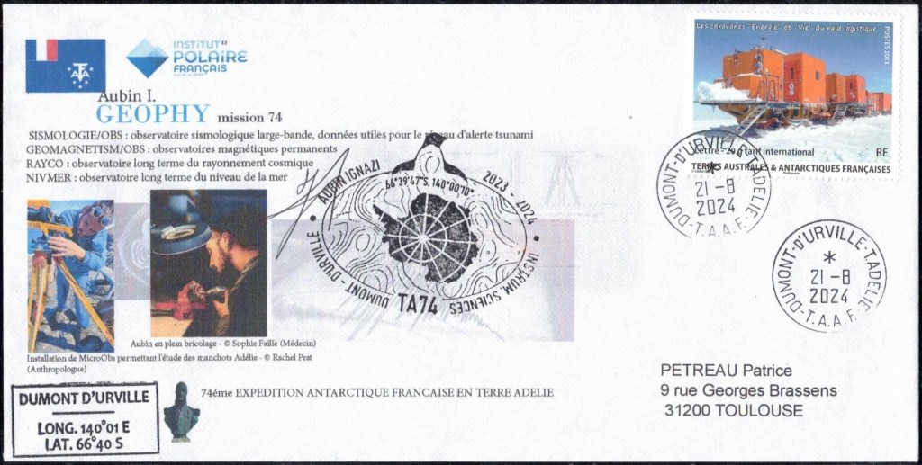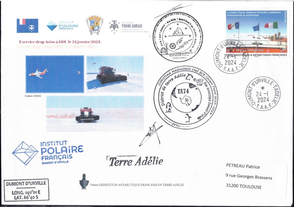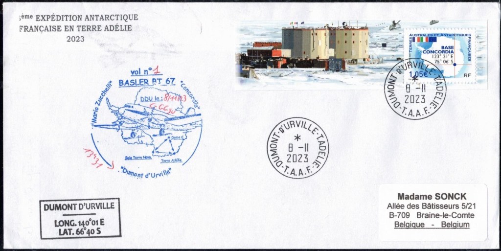 SAISON 2023 – 2024 Vol hélicoptère préparation du raid AWACA Cachet du raid AWACA (atmospheric water cycle over antarctica), raid de déploiement d’unités autonomes